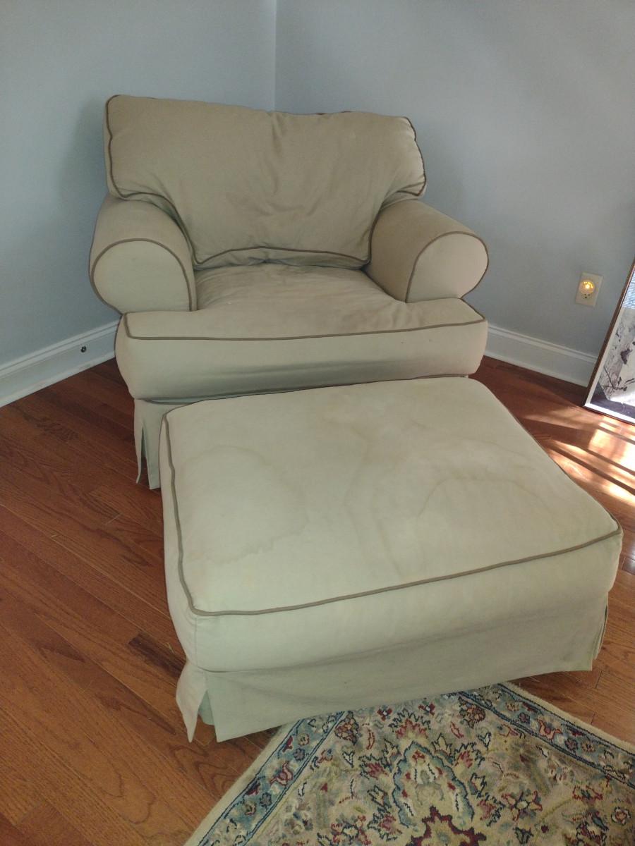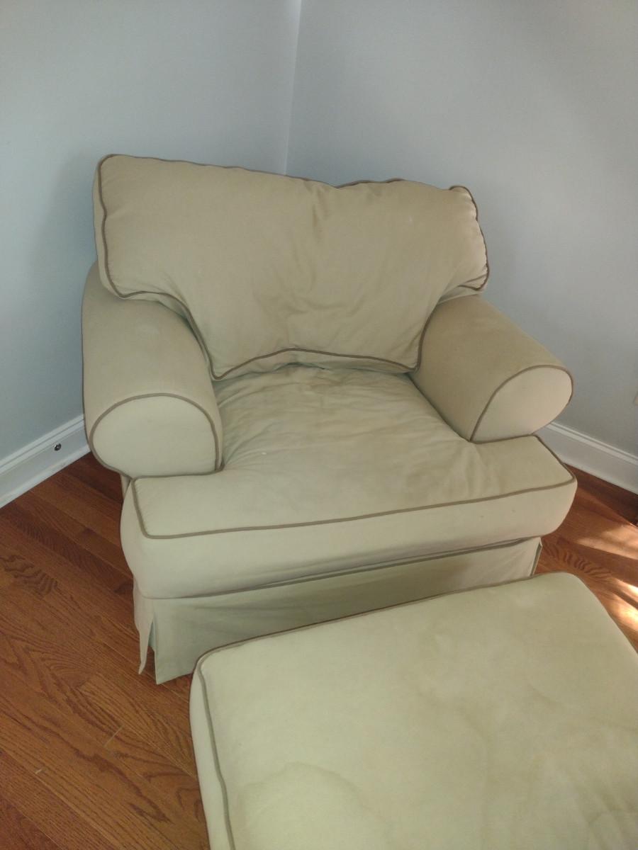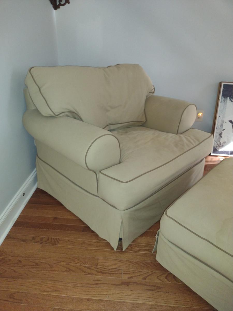 Oversized Upholstered Chair with Ottoman. Please see all pictures- item has some staining.
