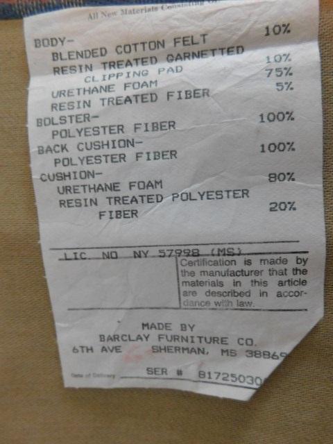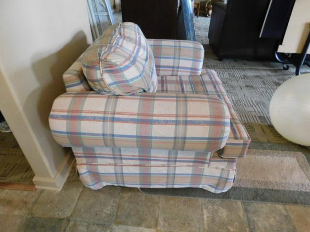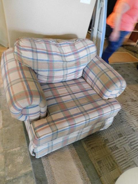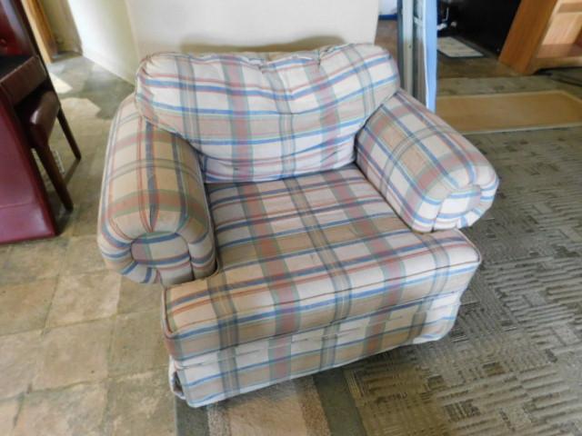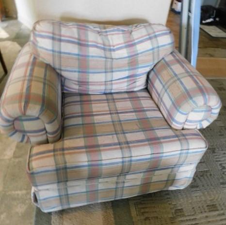 Overstuffed Arm Chair by Barclay Furniture may have some wear. Lower Level will need assistance to remove