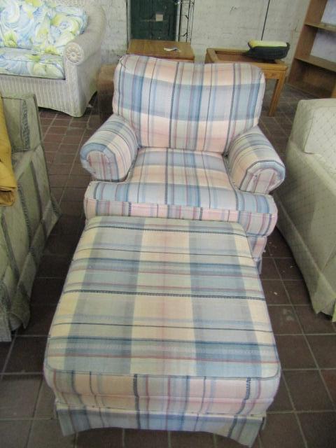 Overstuffed Arm Chair with Ottoman LOC will need some cleaning as shown