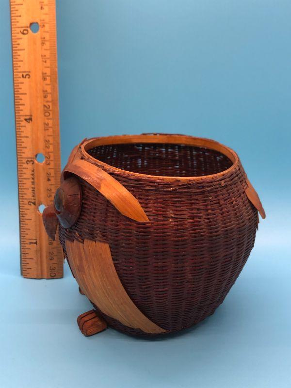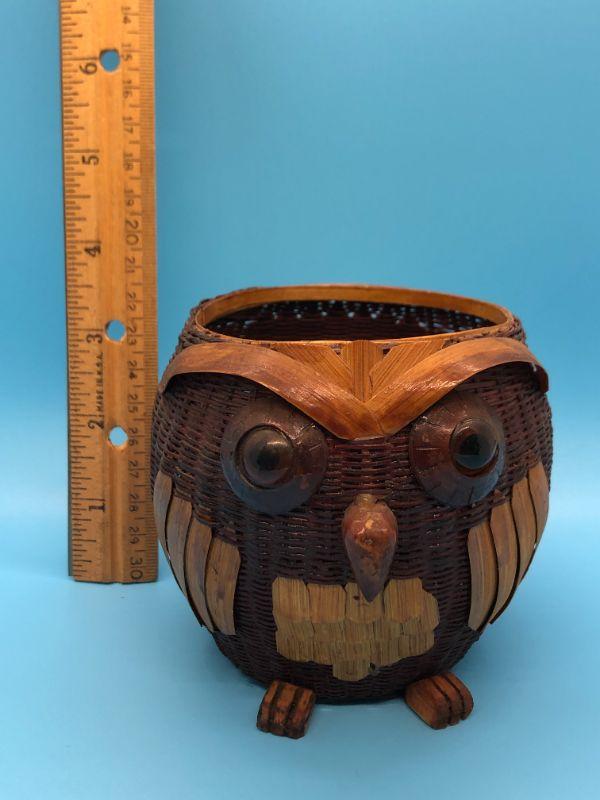 Cute owl shaped basket. Detailed with eyes and a beak. In good condition. Under 4" size.
