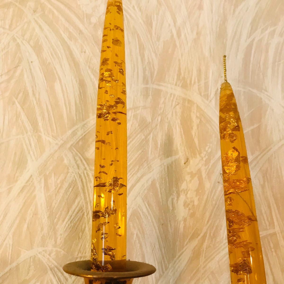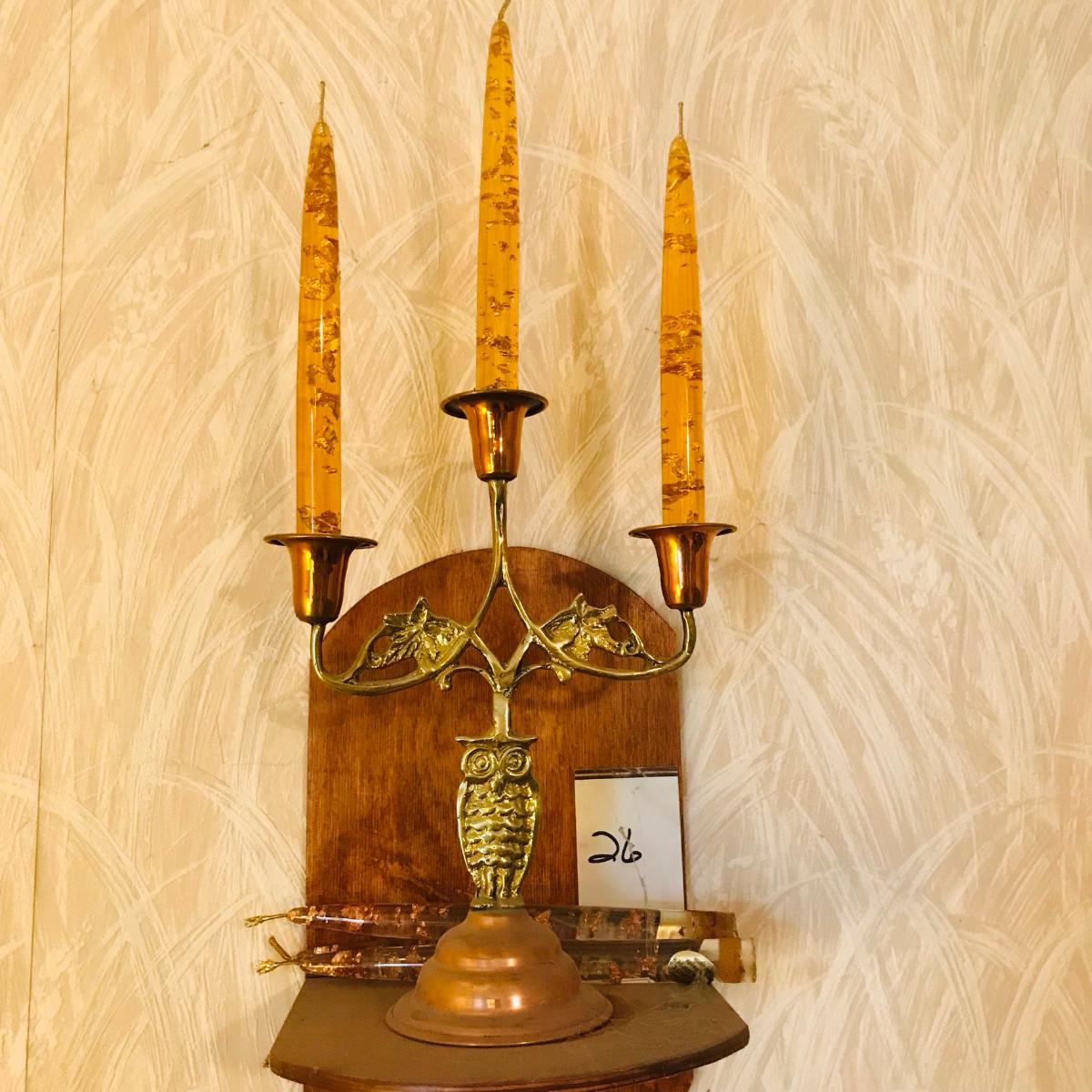 Owl Candle Holder W/ Gold Fleck Lucite Candles