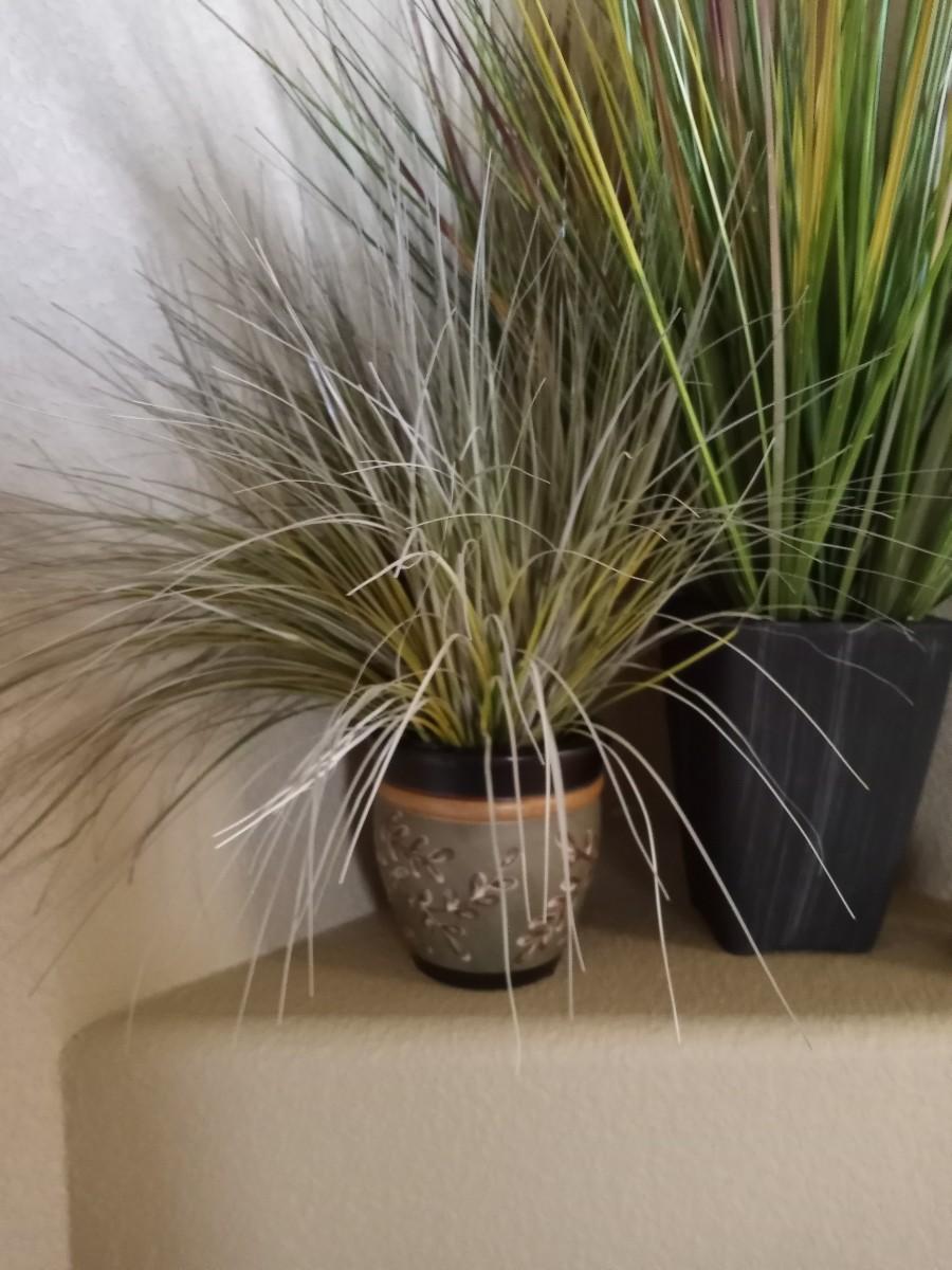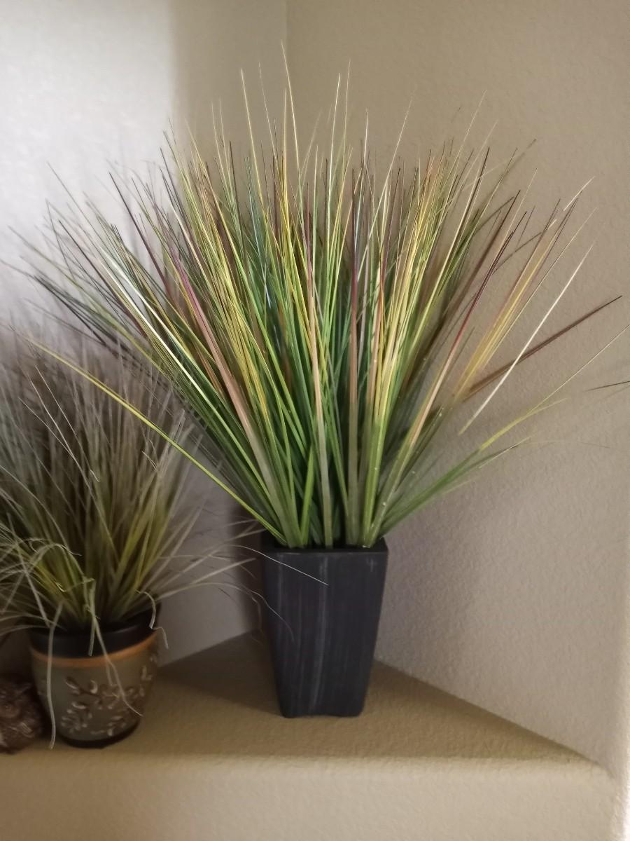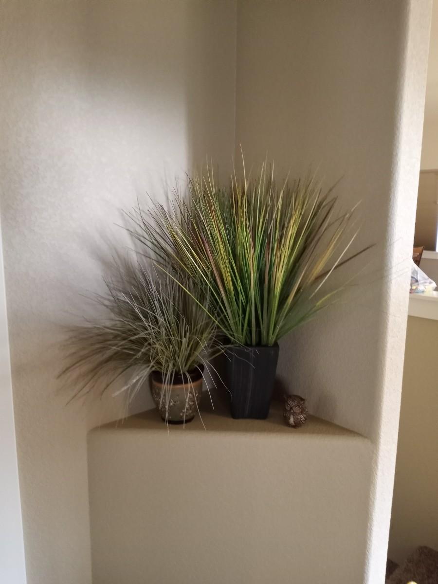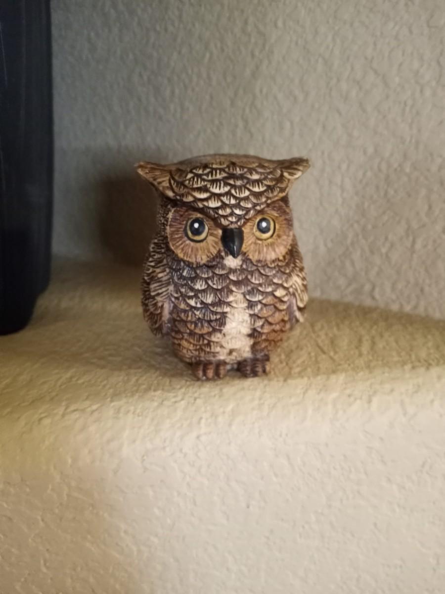 OWL FIGURINE AND NICE POTTED FAUX PLANTS