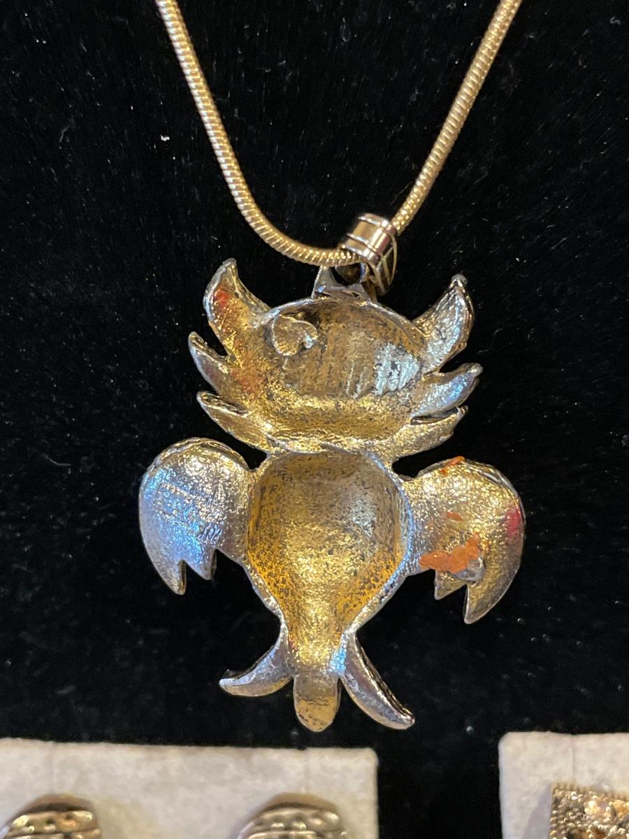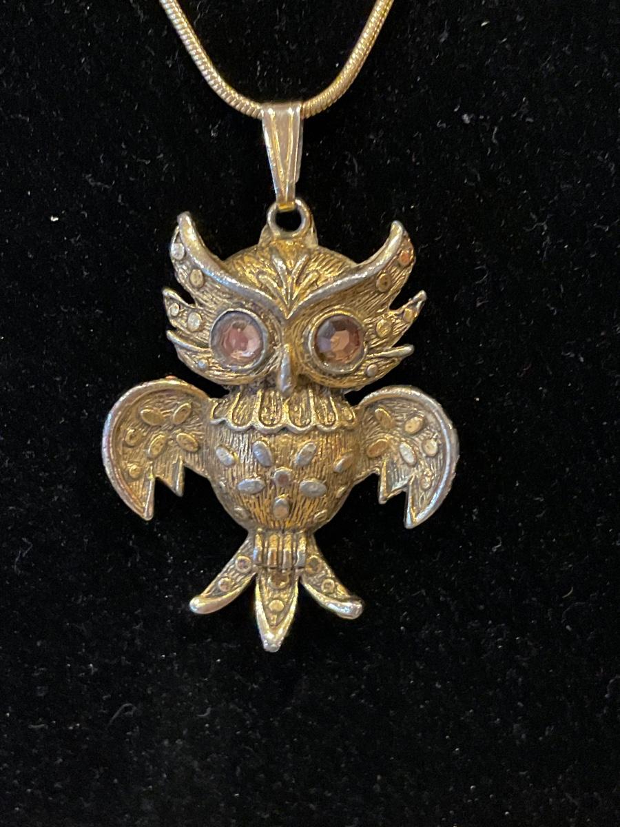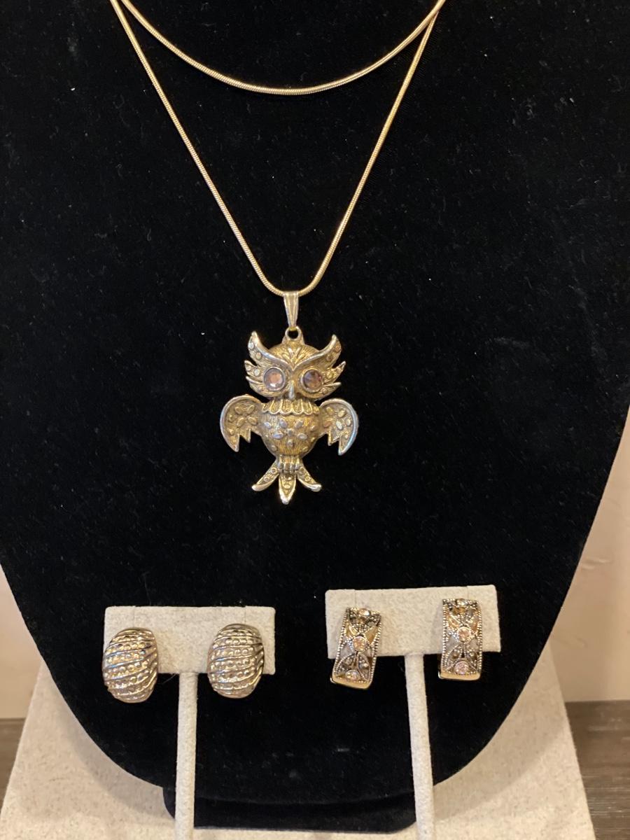 Vintage owl necklace and clip on earrings