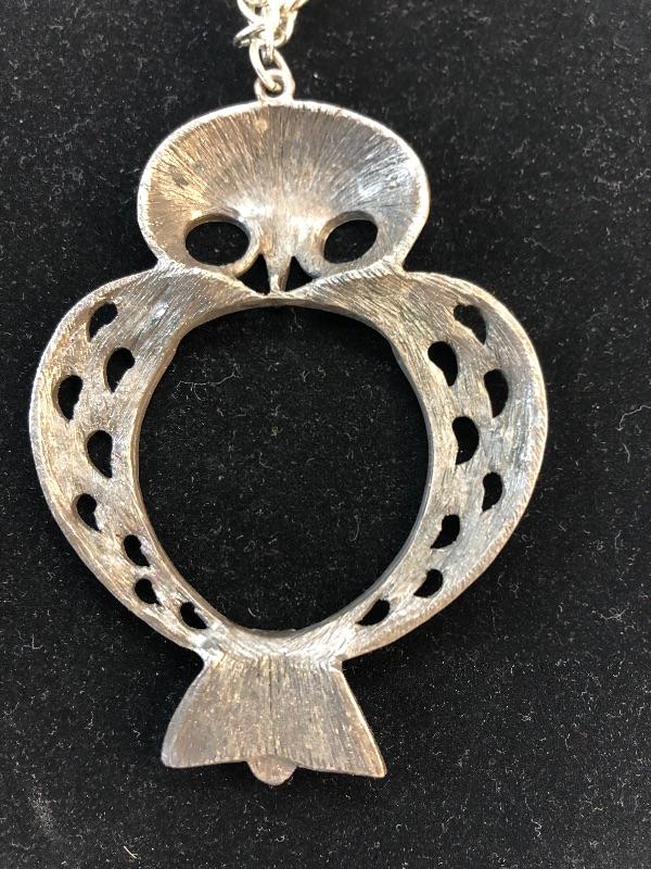 Owl necklace metal outline, vintage