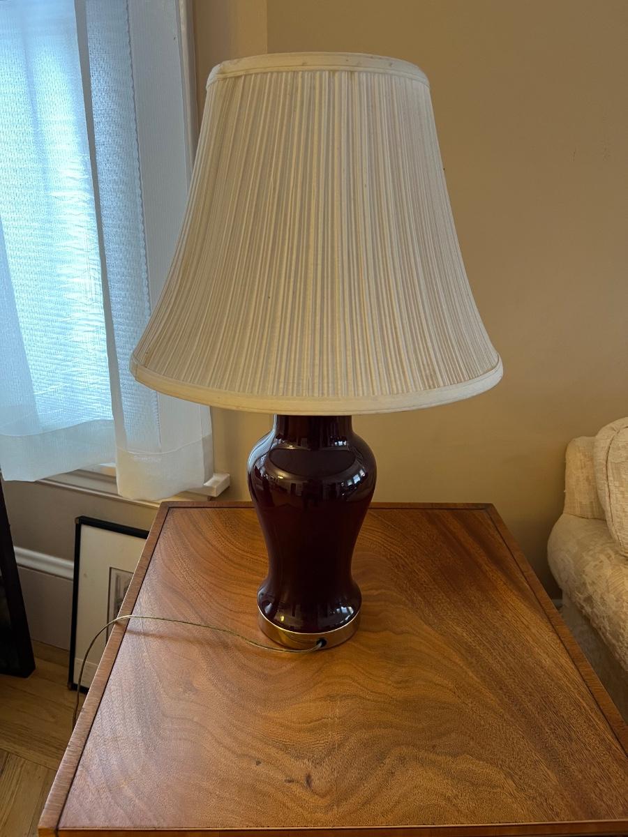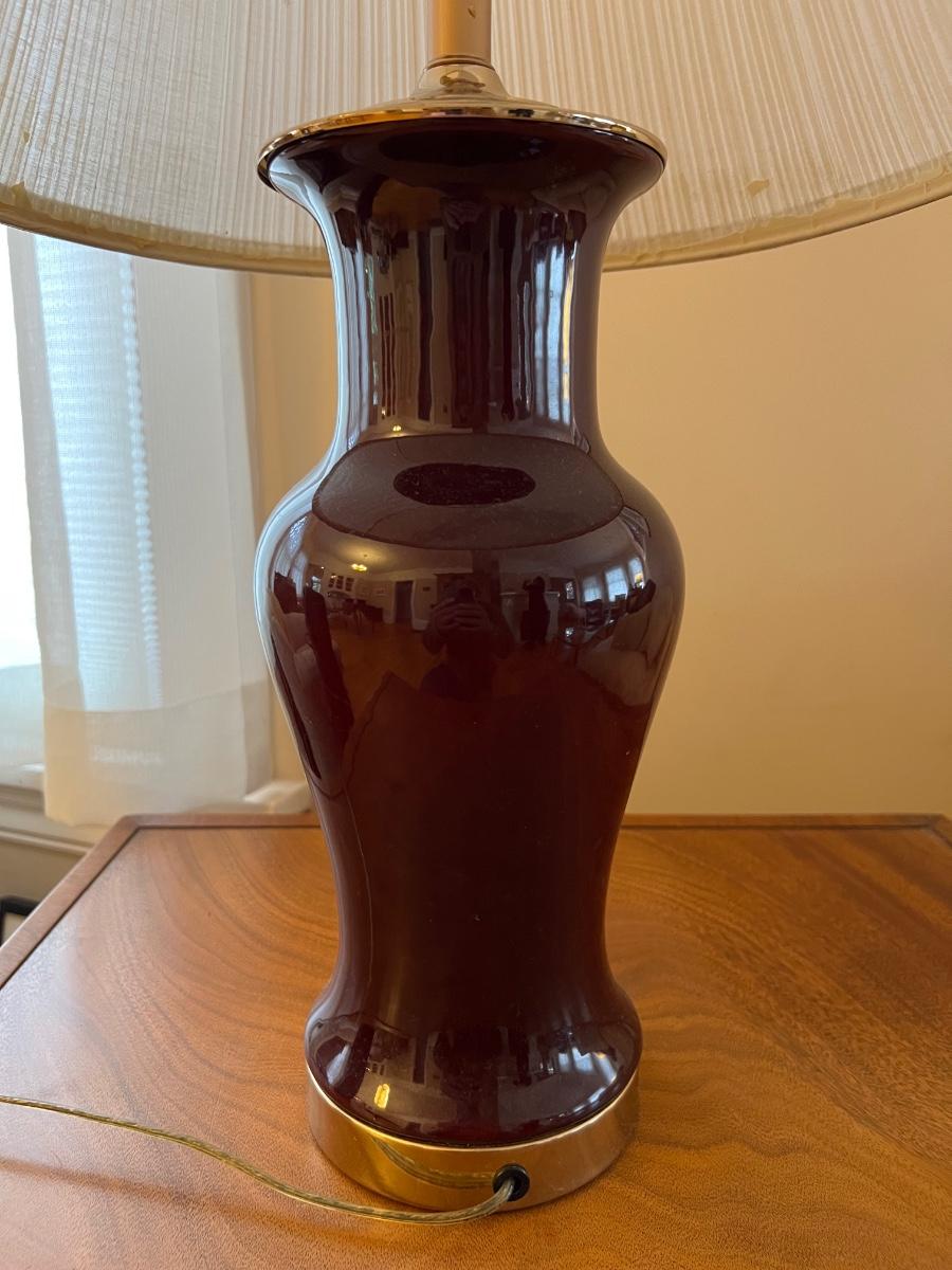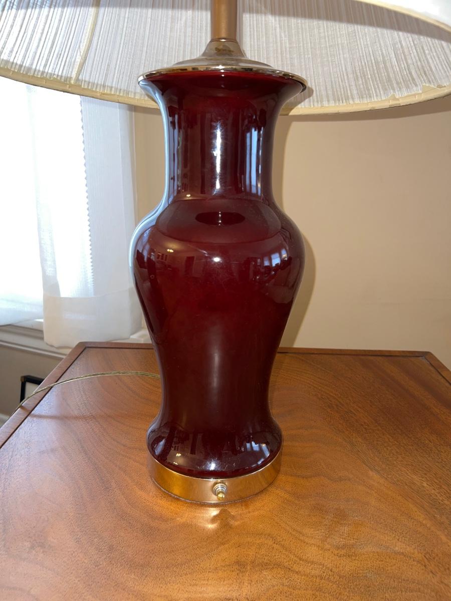 Oxblood porcelain table lamp, needs wiring, 27”T x 16”W