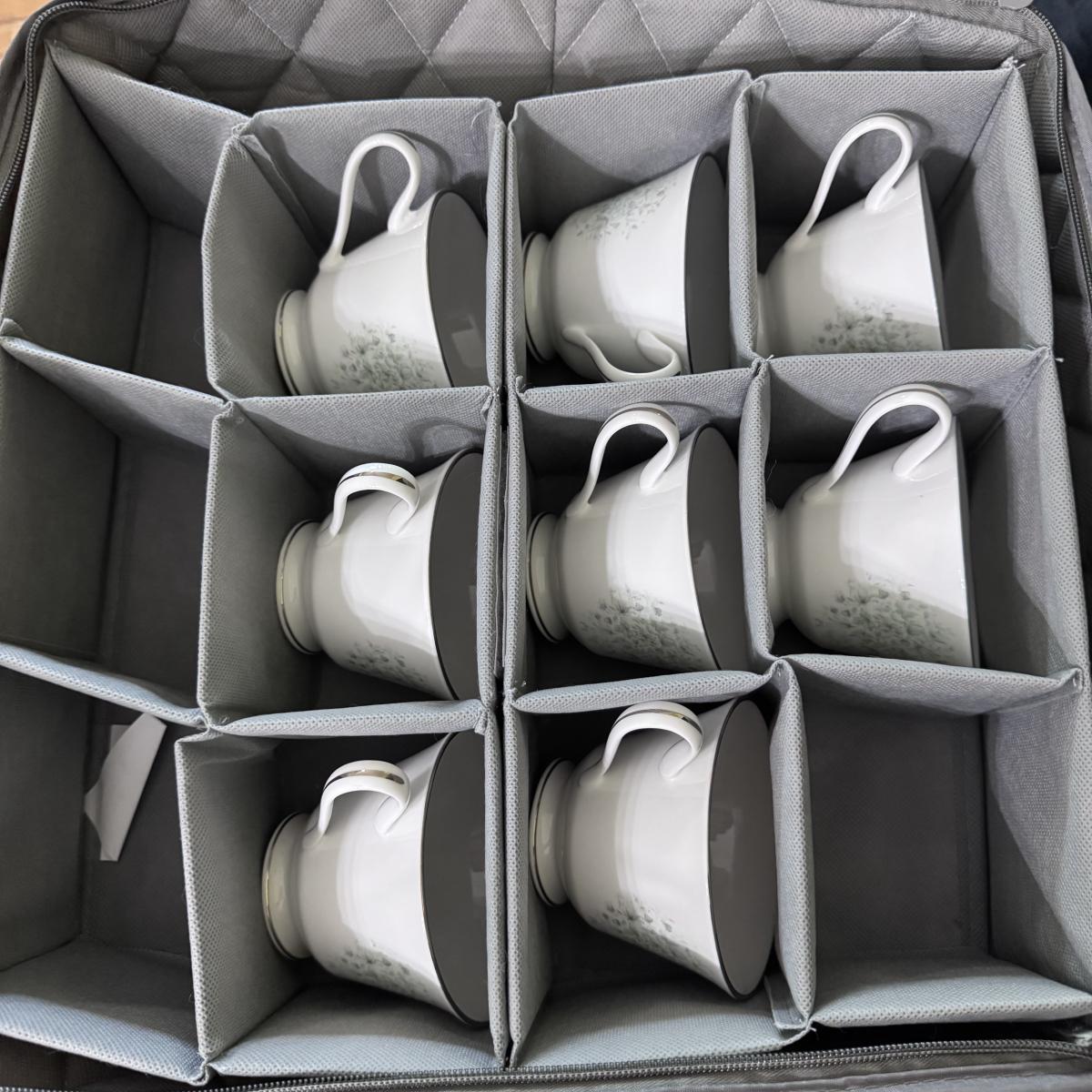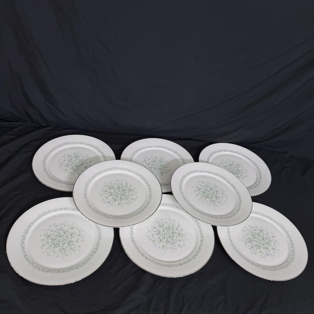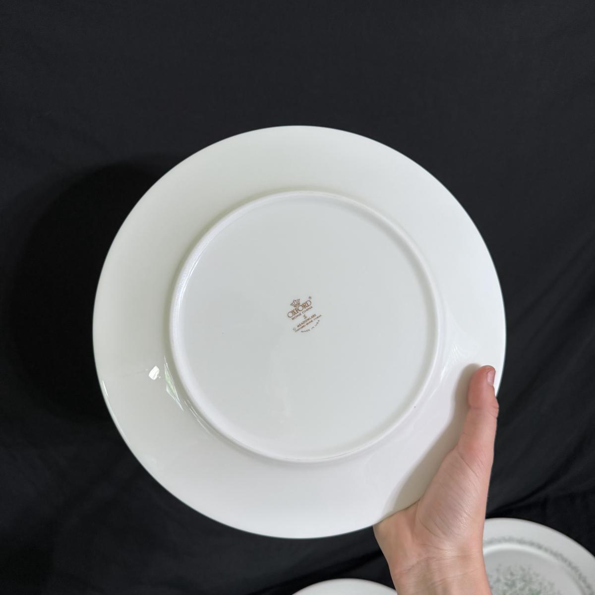 This lot of Oxford bone China in the Meadowlark pattern includes eight dinner plates, eight salad plates, eight appetizer plates, eight saucers, and eight teacups. See pictures for details. The largest plates individually measure 10.5”D. All pieces come in a zip-up storage bag. Shipping available.