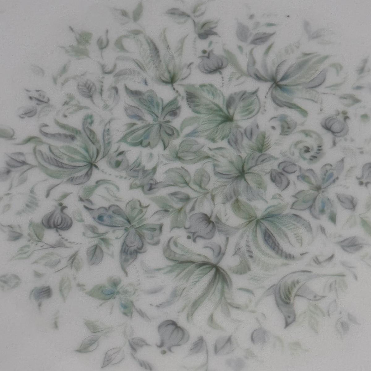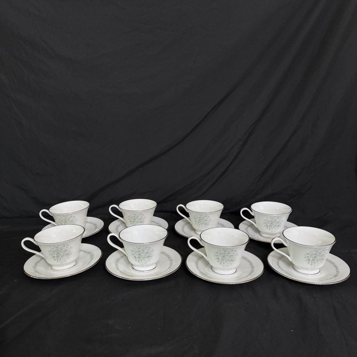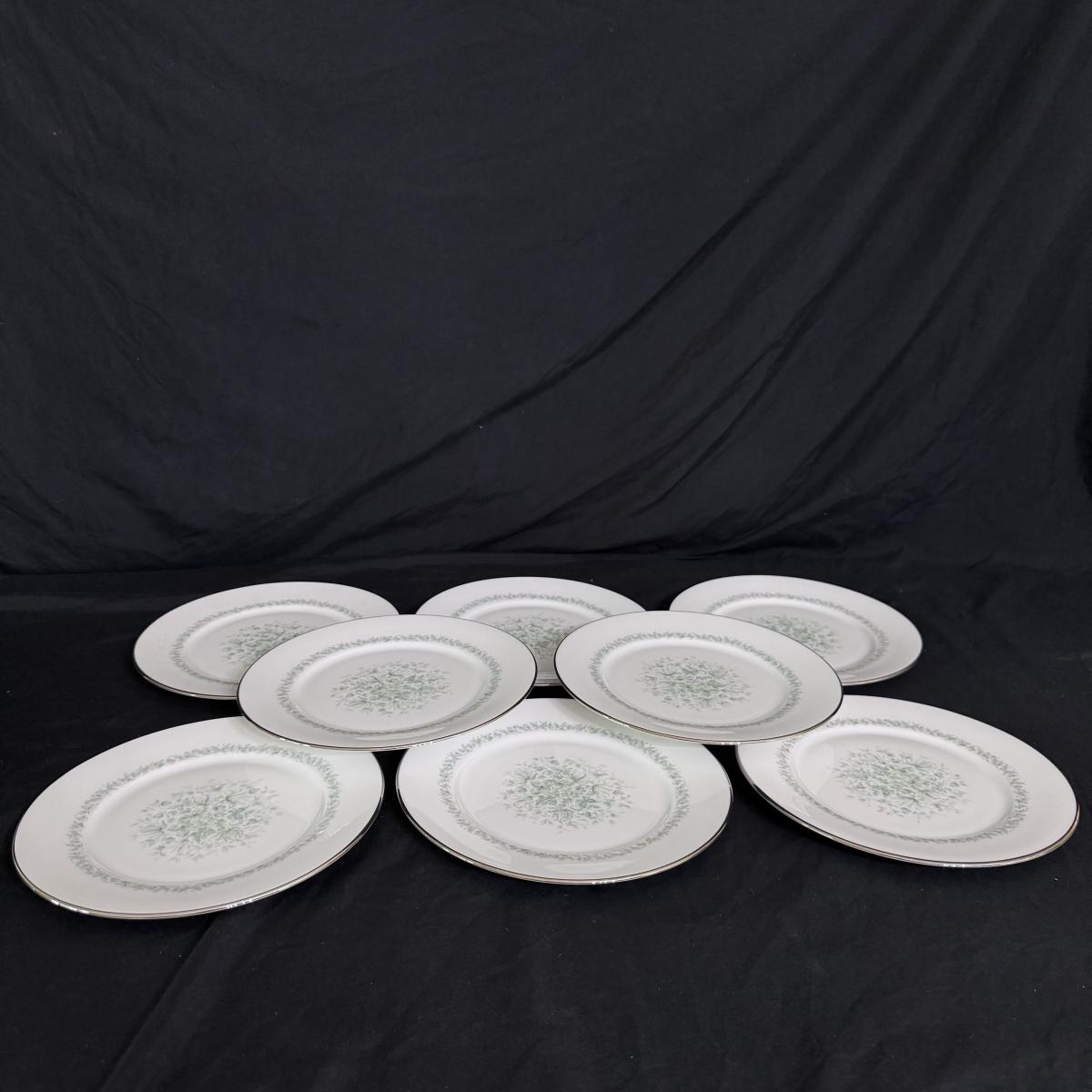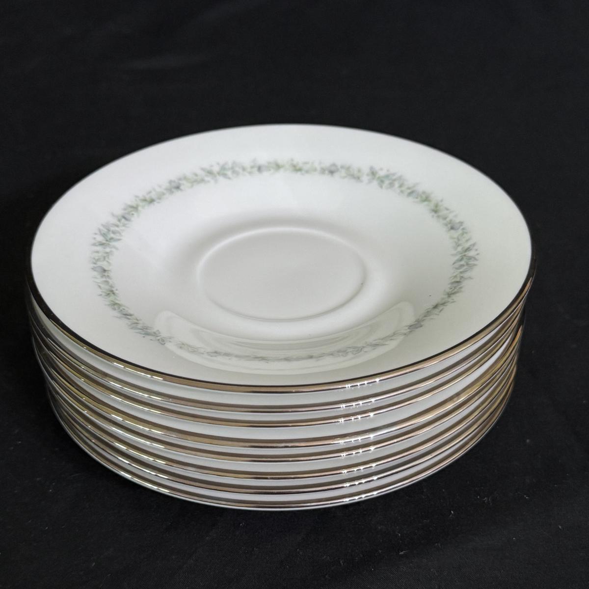 This lot of Oxford bone China in the Meadowlark pattern includes eight dinner plates, eight salad plates, eight appetizer plates, eight saucers, and eight teacups. See pictures for details. The largest plates individually measure 10.5”D. All pieces come in a zip-up storage bag. Shipping available.