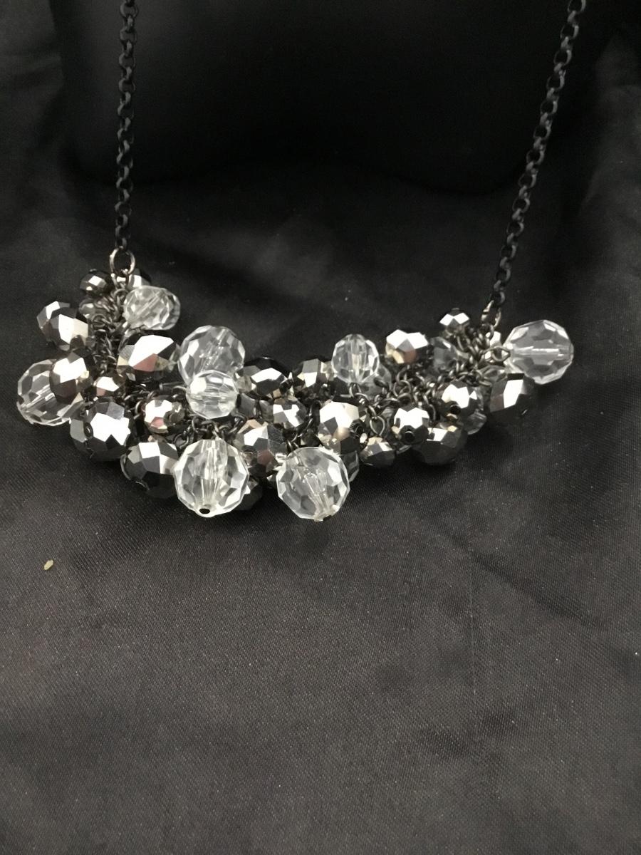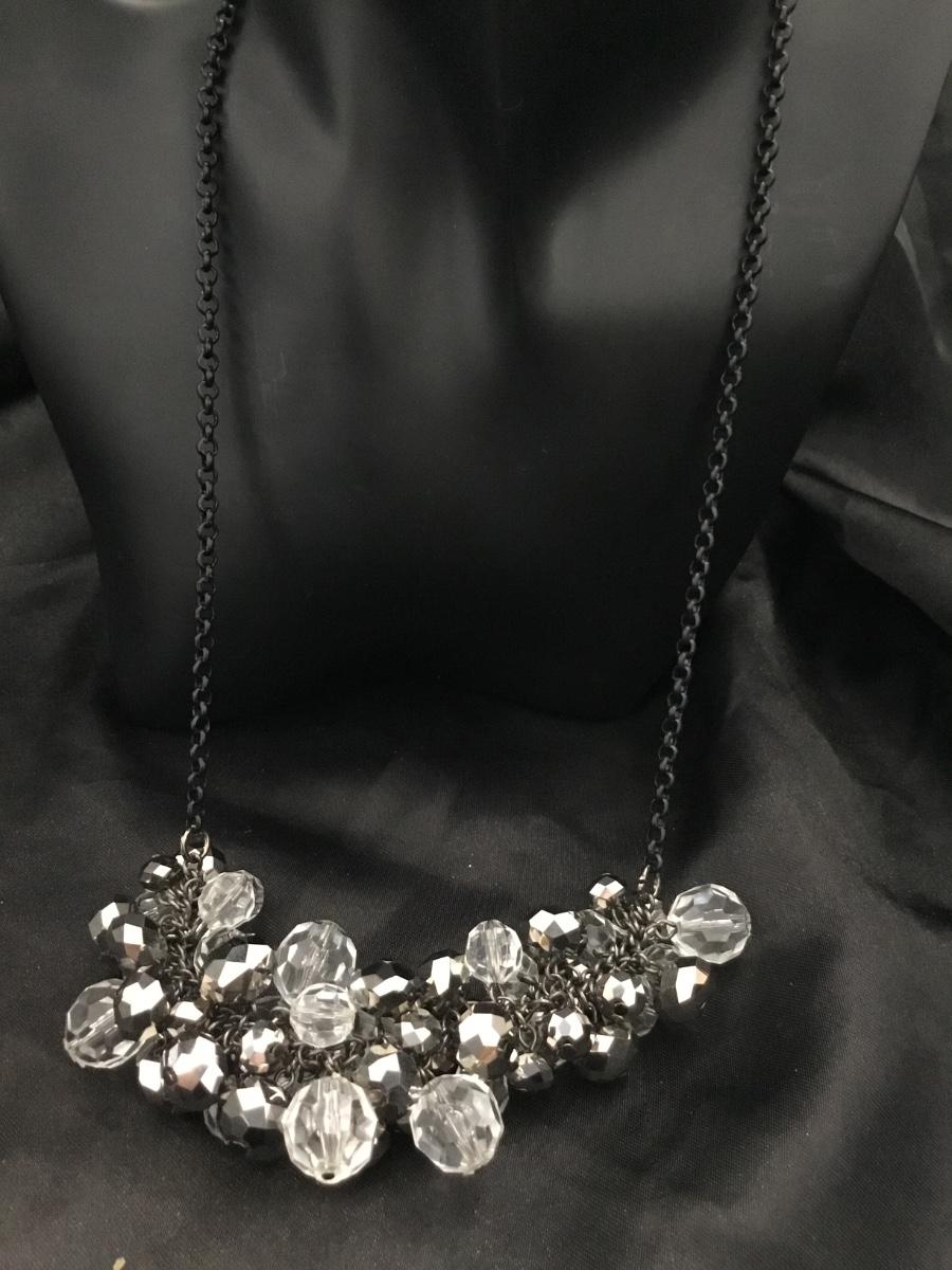 Oxidized Silver-Tone Crystal Cluster Adjustable Necklace