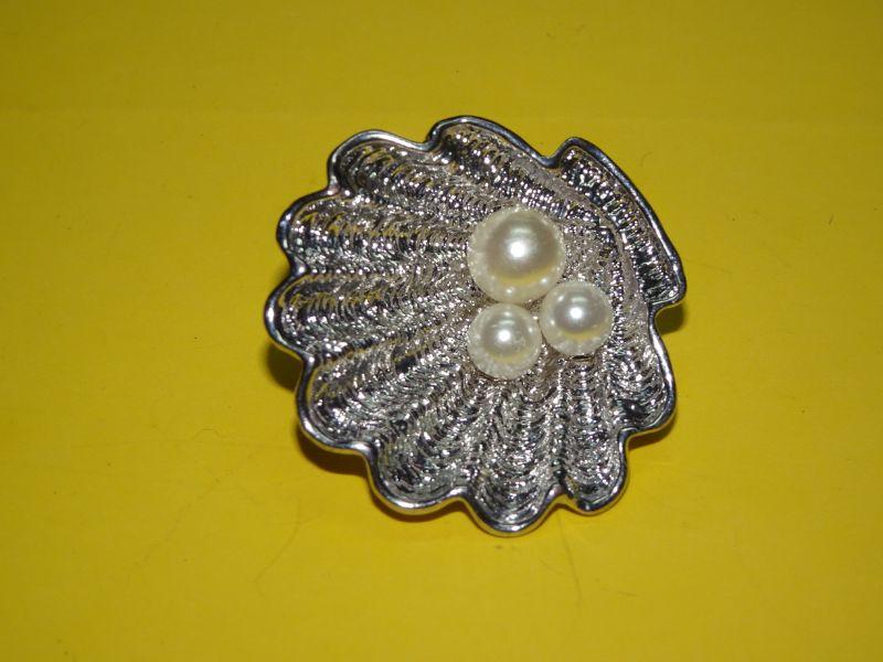 Oyster Shell with Pearls Brooch, Silver Tone, You are the Pearl of my Eye!
