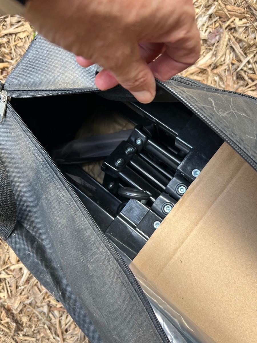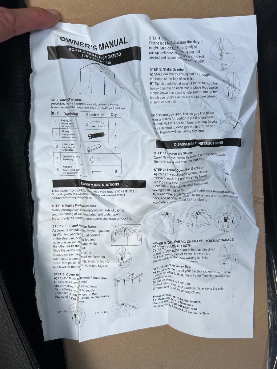 This 10’ x 10’ grey topped gazebo appears unused; however, the black carrier bag has some wear from storage. See pics for what this item looks like when put up. Item was not put up due to no signs of use.