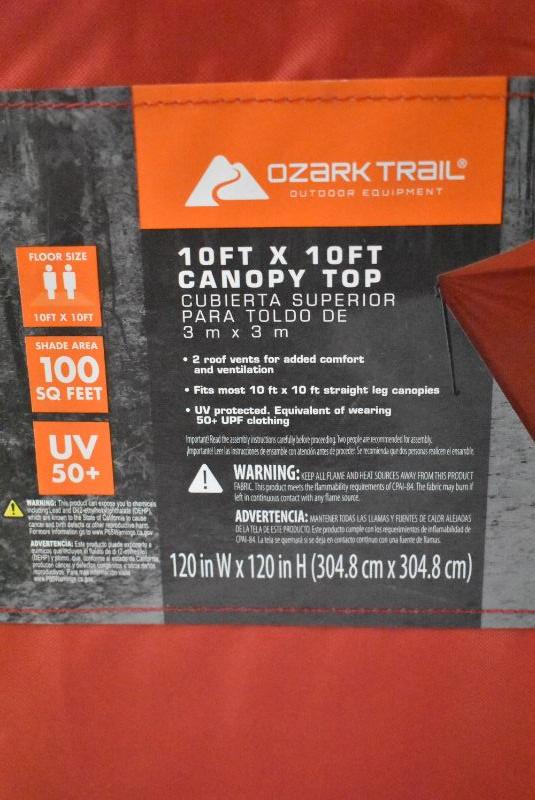 Ozark Trail 10' x 10' Gazebo TOP ONLY, Red, Frame NOT Included - New