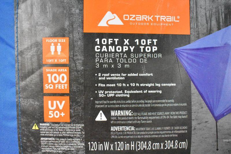 Ozark Trail 10' x 10' Gazebo Top for Tailgating or Sports Events, Blue - New