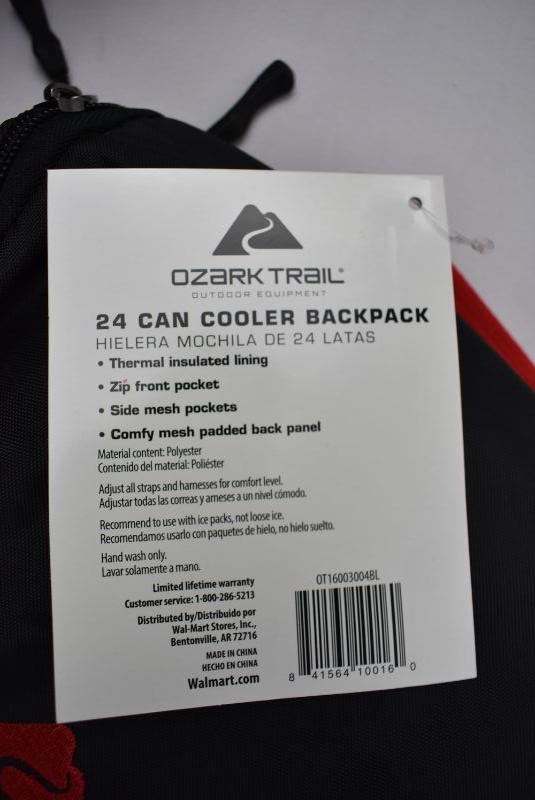Ozark Trail 24 Can Cooler Backpack, Black & Red - New