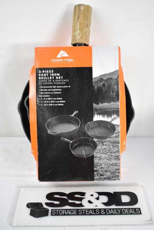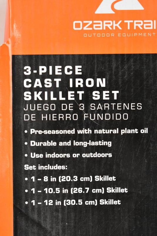 Ozark Trail 3 Piece Cast Iron Skillet Set, $25 Retail - New