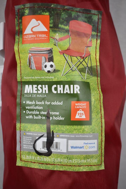 Ozark Trail Basic Mesh Folding Camp Chair with Cup Holder. Red - New