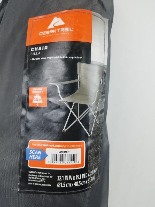 Ozark Trail Camp Chair. Gray with Cup Holder & Steel Frame - New