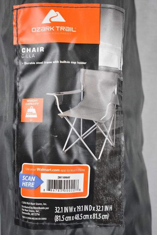 Ozark Trail Camp Chair with Bag, Gray - New