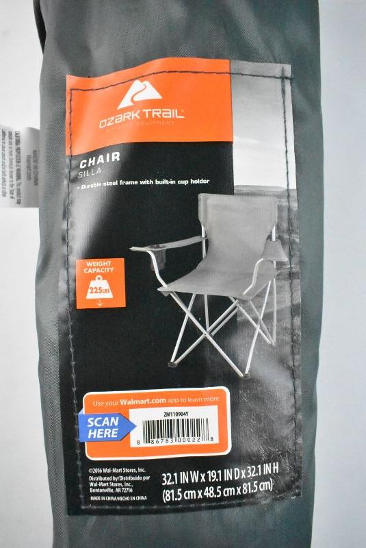 Ozark Trail Gray Camp Chair with Cup Holder - New