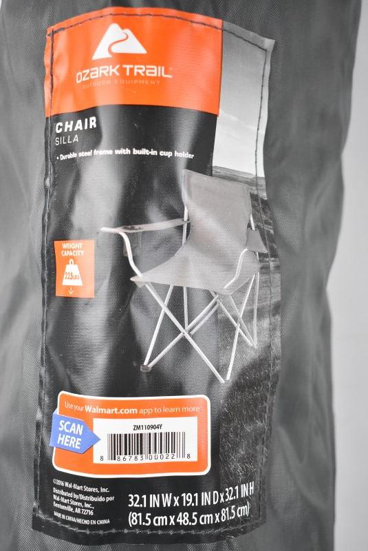 Ozark Trail Gray Camp Chair with Carrying Bag - New