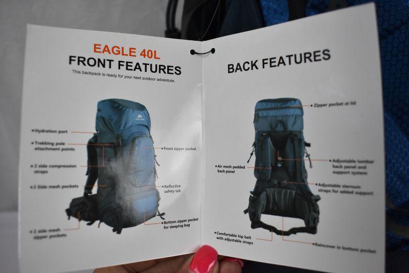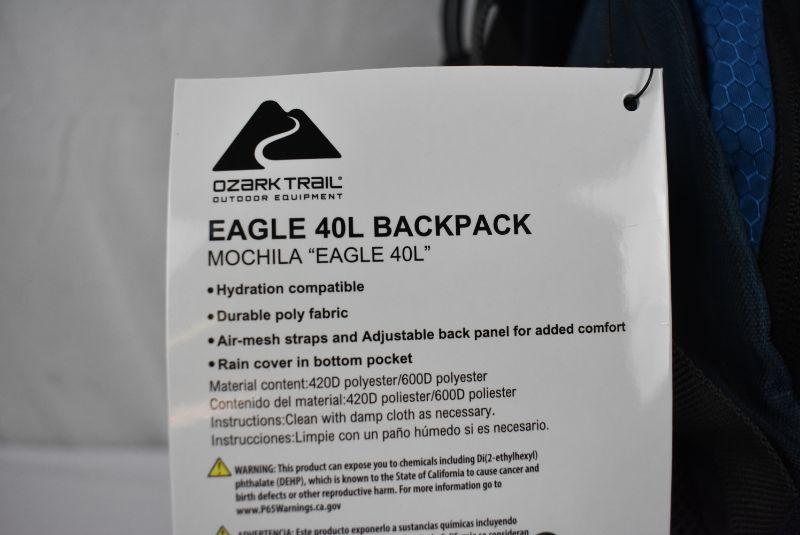 Ozark Trail Hiking Backpack Eagle, 40L Capacity, Blue - New