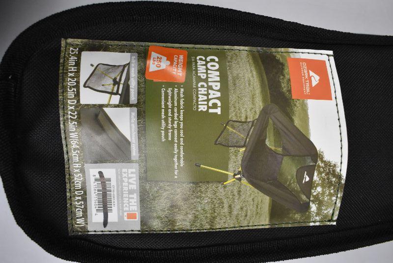 Ozark Trail Himont Compact Camp Lite Chair, Black, $25 Retail - New