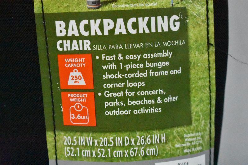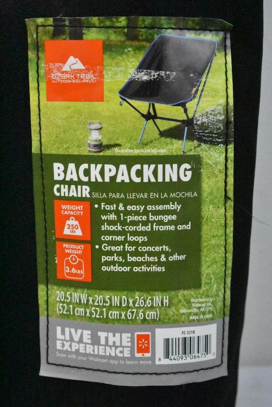 Ozark Trail Lightweight Weather-Resistant Backpacking Chair, Black - New