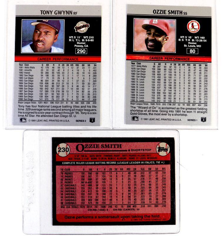 OZZIE SMITH TONY GWYNN BASEBALL CARDS SET - MINT