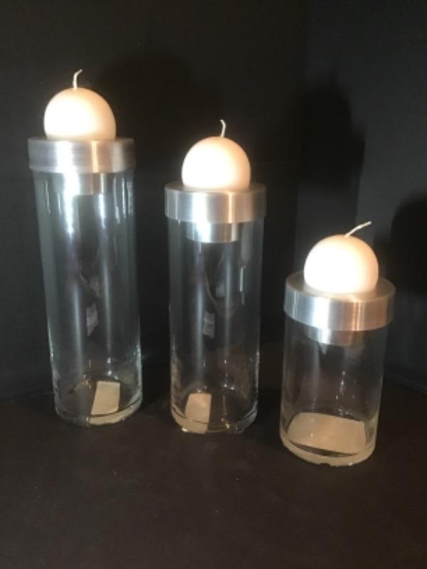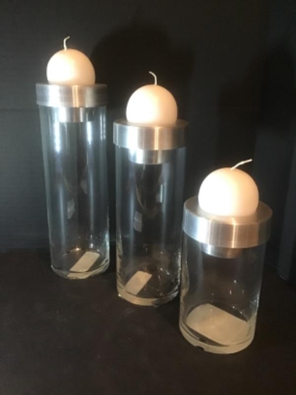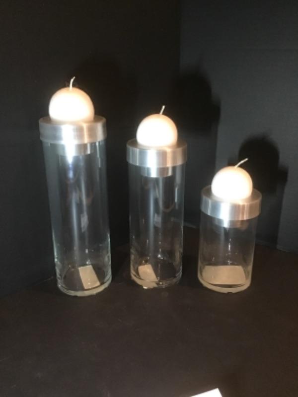 P - 1106 Three Glass / Silver Candle Holders