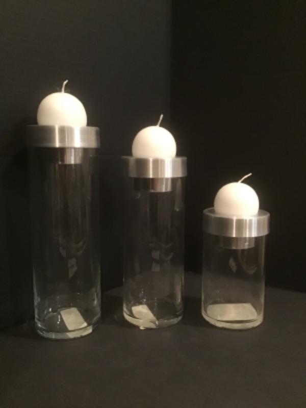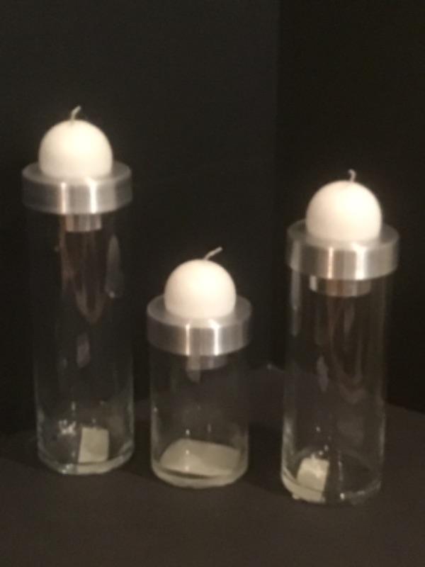 3 Glass / Silver Candle Holders and Candles