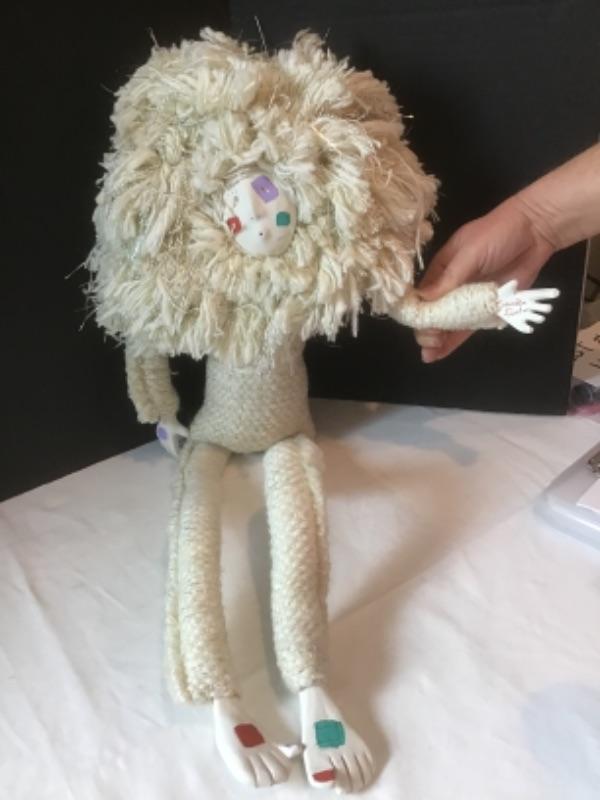 Signed by Sandie Fenton, Hand Painted/Made Decorative Doll, Hands, Feet, Face are Ceramic -