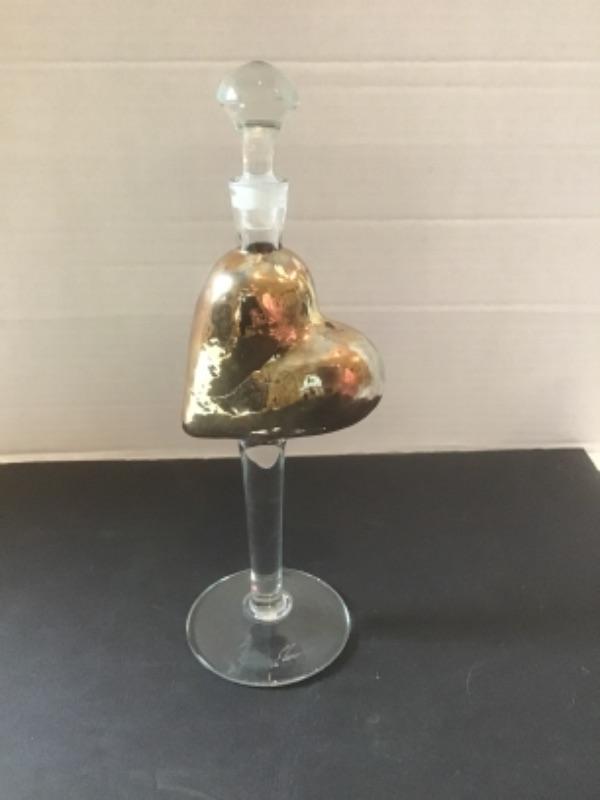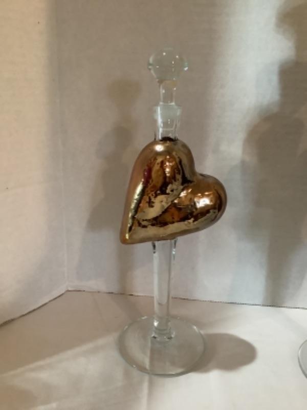 P - 1141 Artisan Signed Gold Glass Heart Bottle by Elena