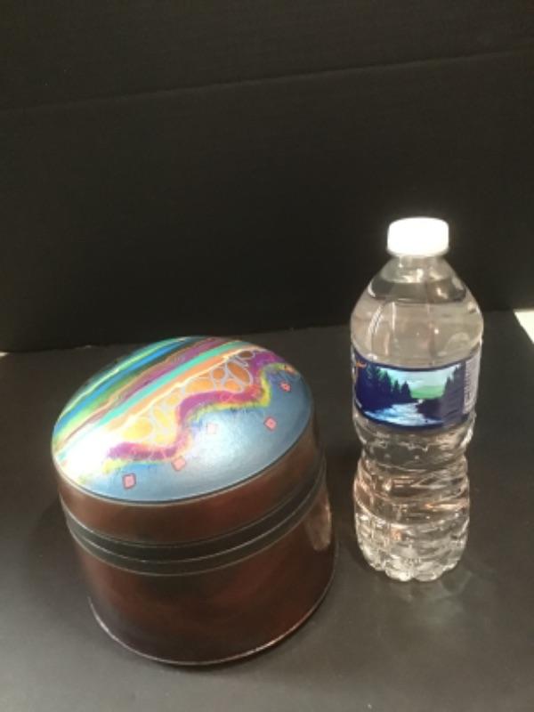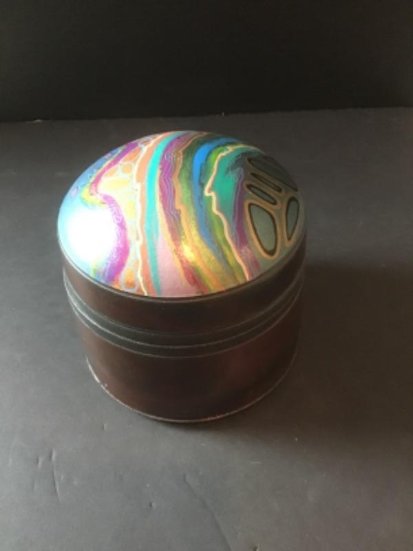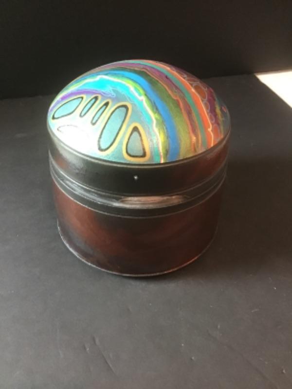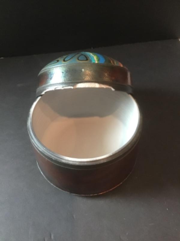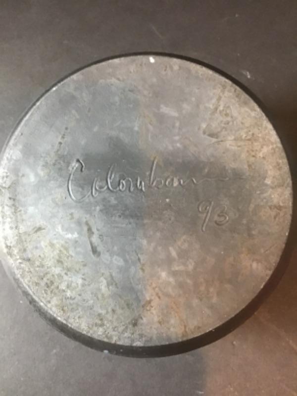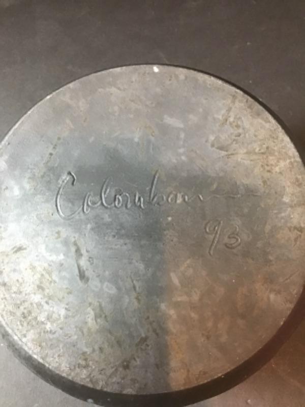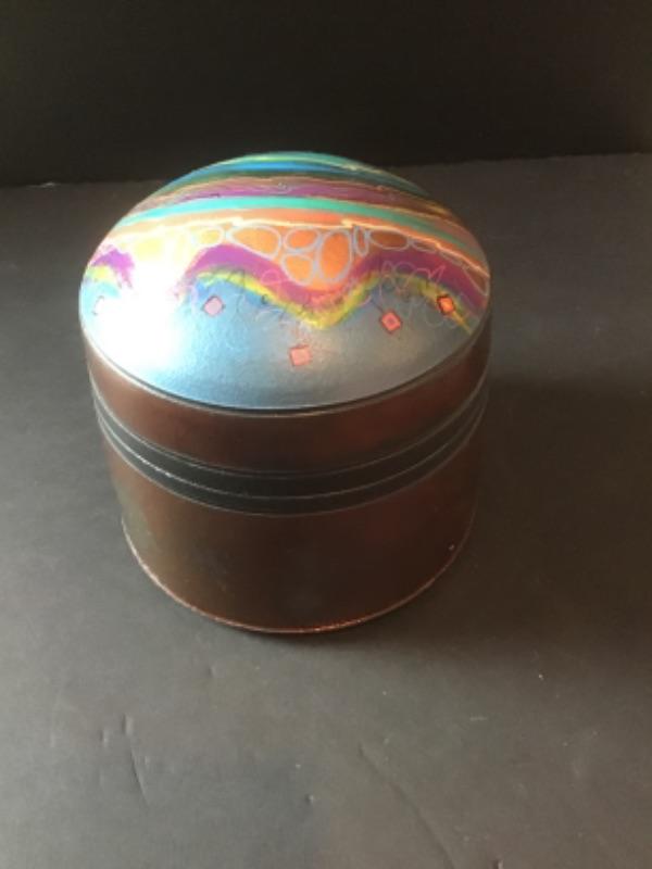 Signed Colombian Raku Pottery Copper Glaze ,has some chipping on the side of the rim of the lid ( see pictures )