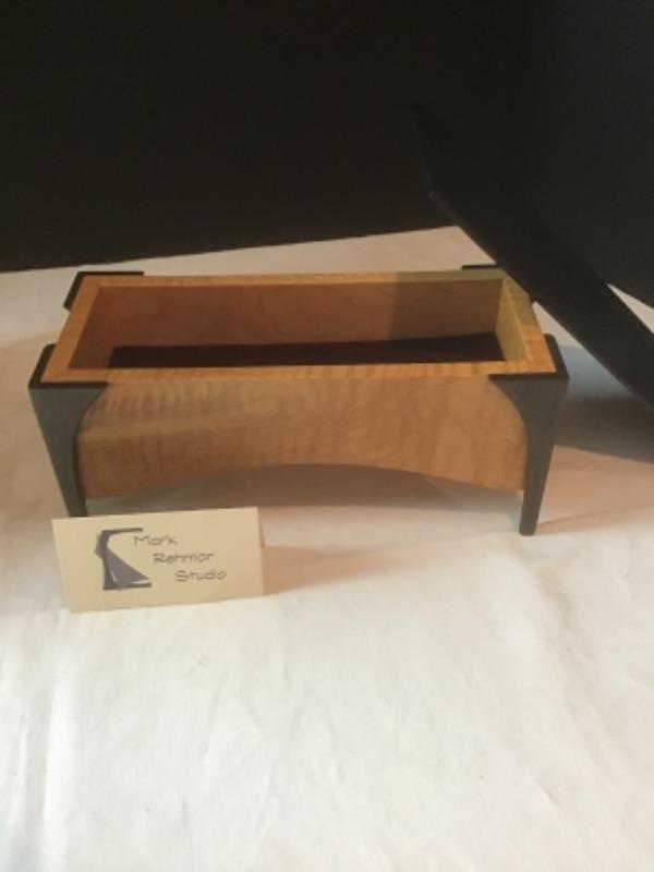 1 ) Mark Rehmar Studio, lid-Ebonized Maple, Body- Curly Maple, Trim-Ebonized Walnut, with velvet lined