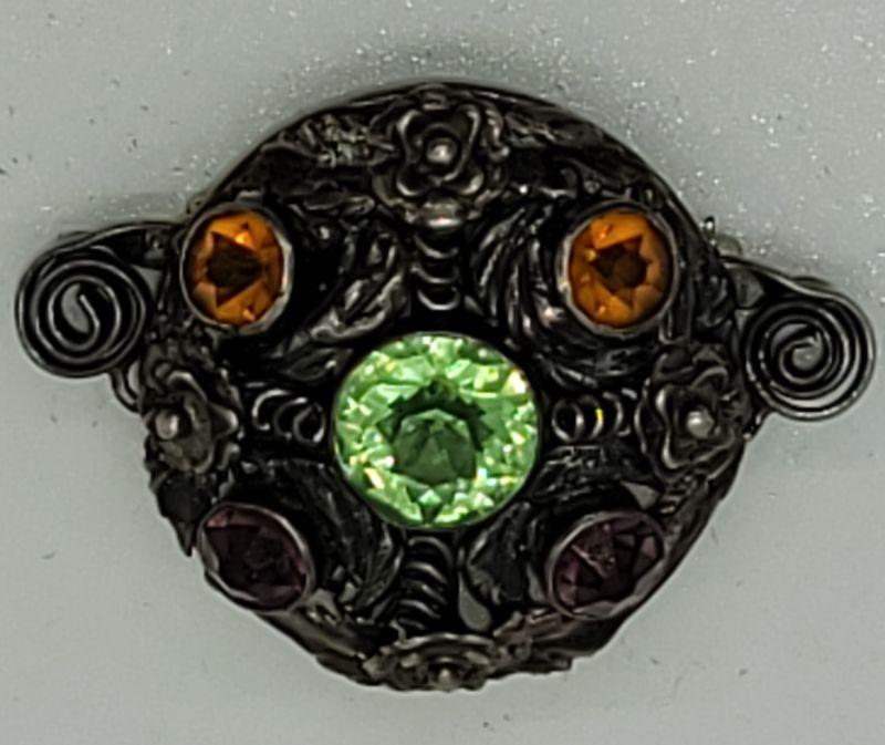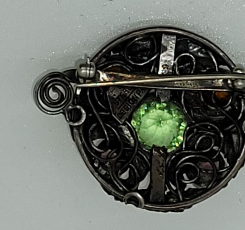 PJ8** Silver Brooch with gemstones and 7 pairs of Silver Earrings.