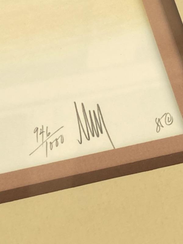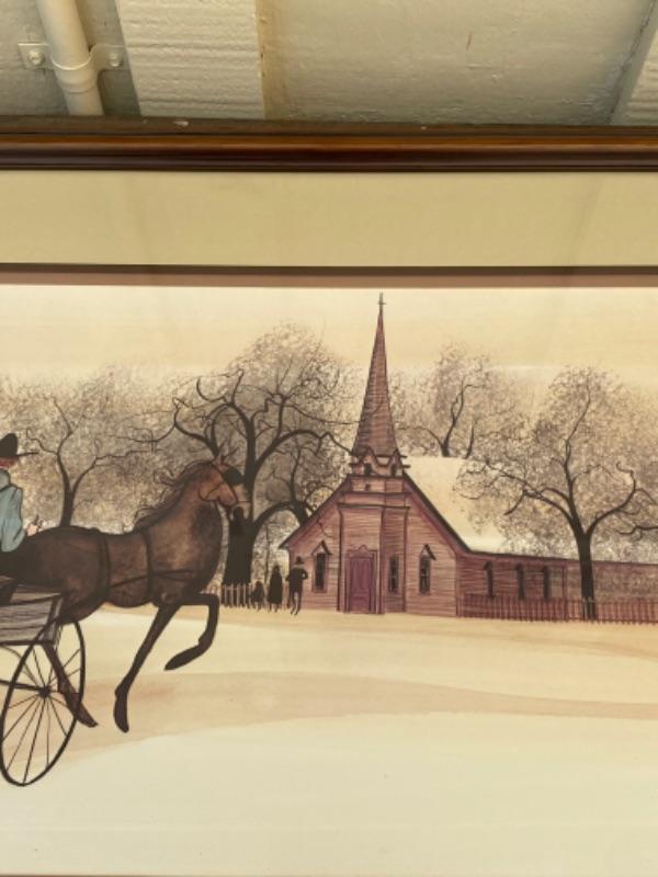 Large artwork 43" x 21" - 1985 #946/1000 limited edition print by P. Buckley Moss - whole family riding in buggy wagon towards church