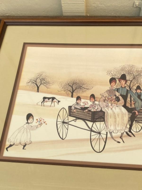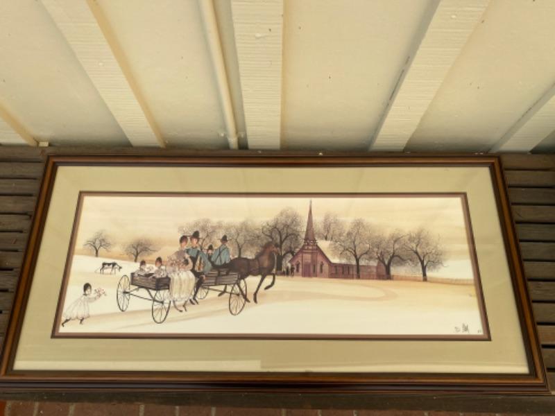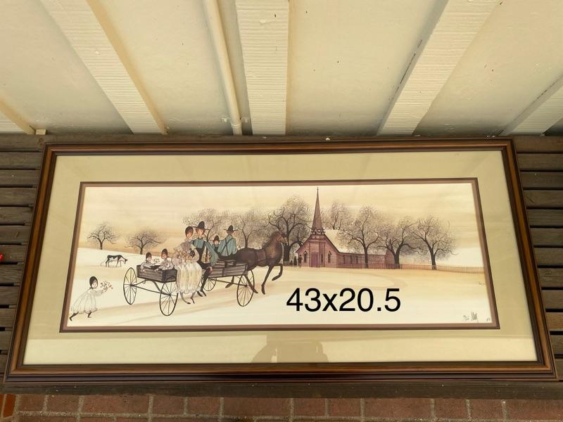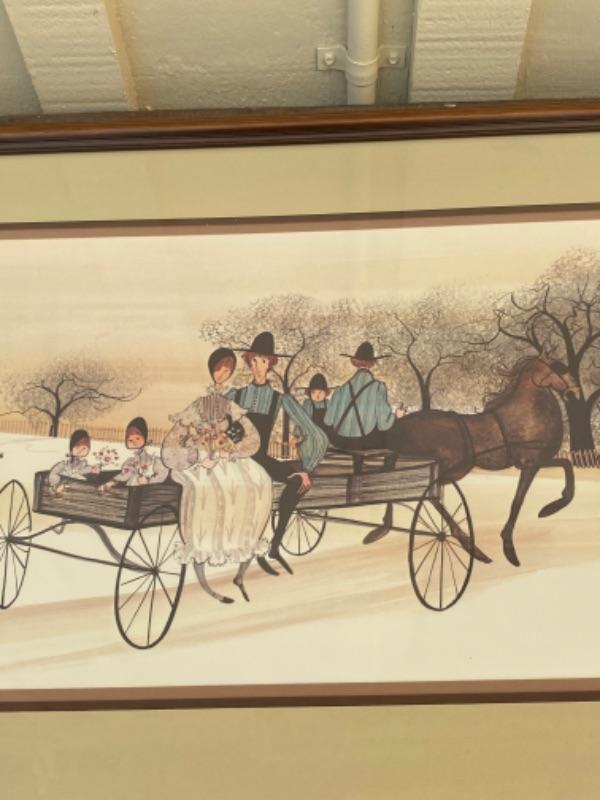 Large artwork  43" x 21" - 1985 #946/1000 limited edition print by P. Buckley Moss - whole family riding in buggy wagon towards church
