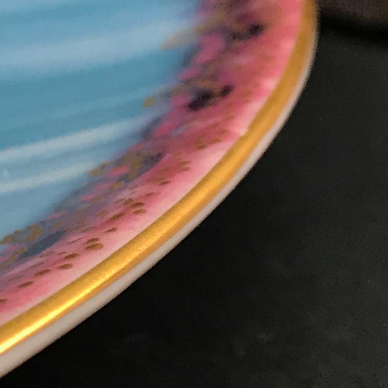 Plate is in excellent condition with no visible scratches, chips, or cracks. All of the gold-leaf around the edge is intact. Plate measures 7 3/4” in diameter.