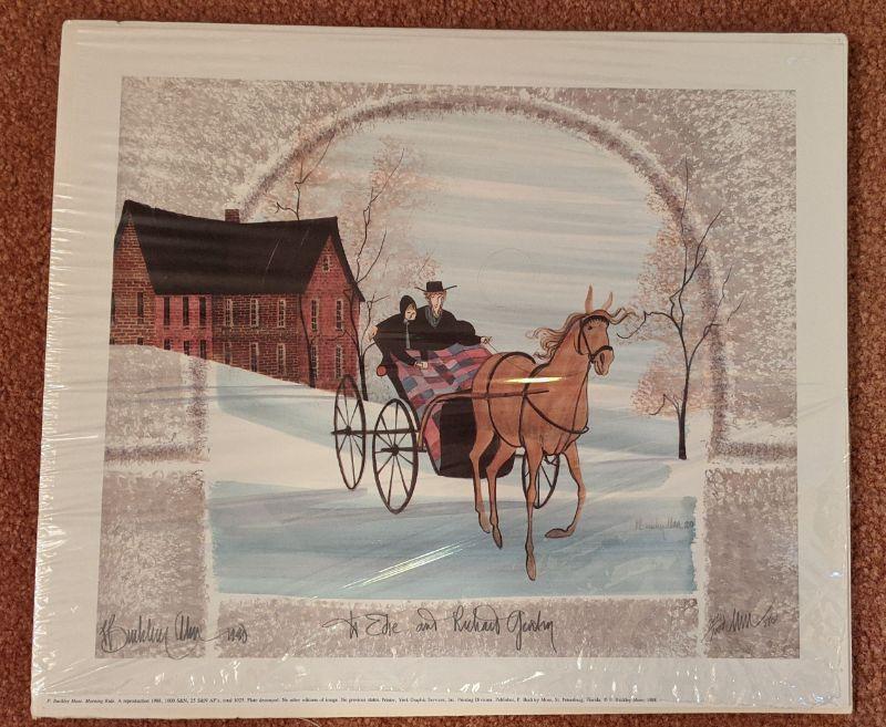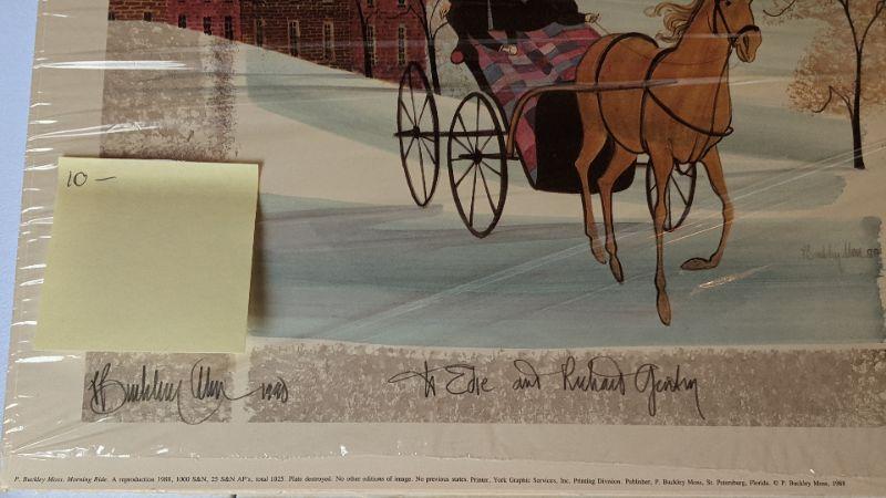 P Buckley Moss Print 'Morning Ride' 741/1000 Artist signed and inscribed to owners in 1990 (#10)