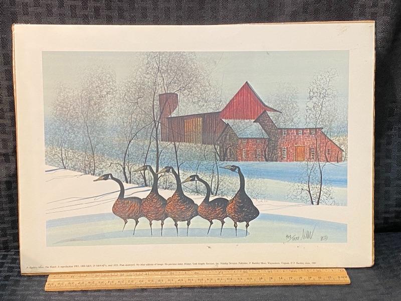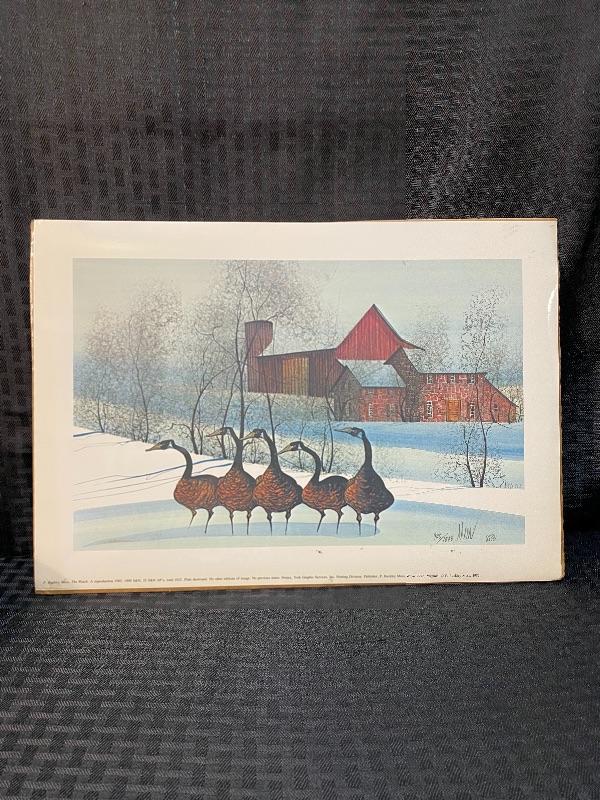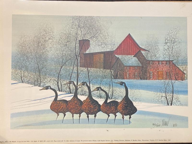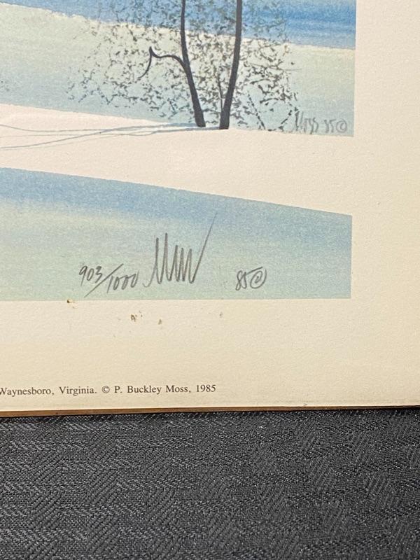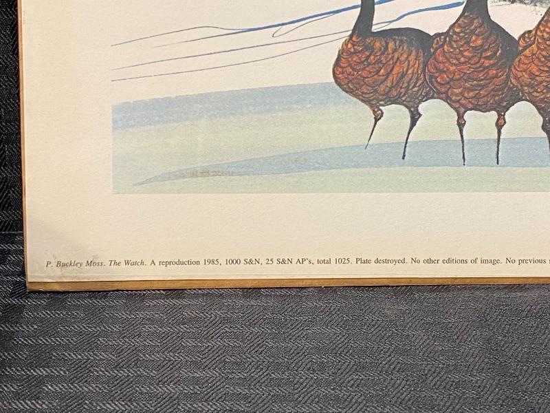 P Buckley Moss "The Watch" 1985 reproduction print. Unframed, measures about 14.5"x10". Signed and numbered. in plastic, on cardboard. Smudges are on plastic not art.