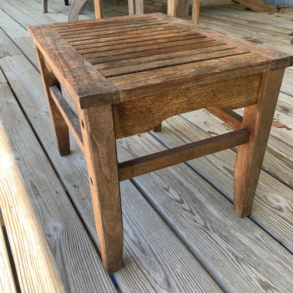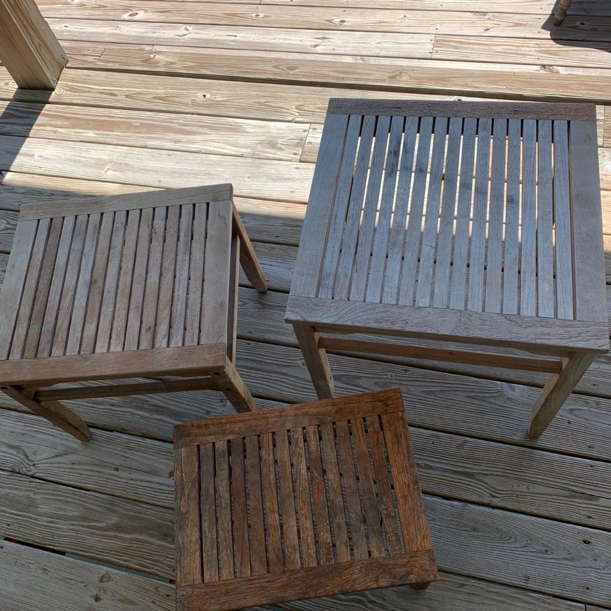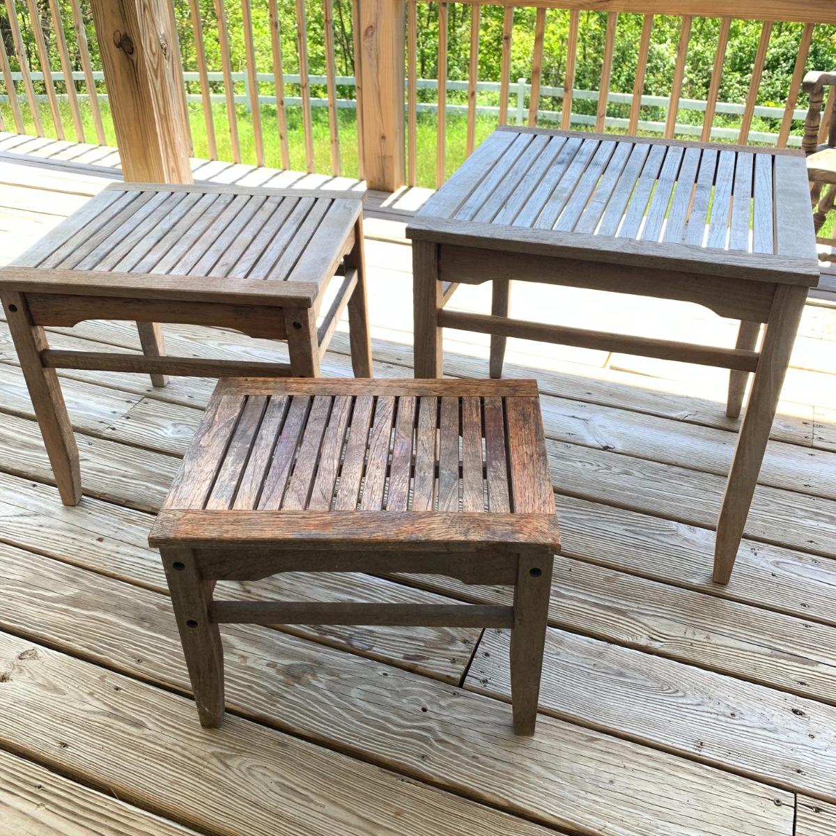This lot includes 3 small and medium sized wooden tables. The tables are made of a lightweight wood and appear to be in good condition. The two lighter wood tables may need to be stained. The smallest table measures about 12in x 16.5in x 12in and the largest table measures about 19.5in x 19.5in x 20in. Local Pickup Only.
