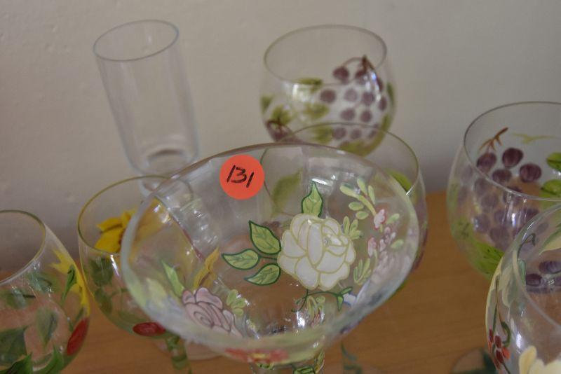P Lot 131: Collection of Handpainted Wine Glasses