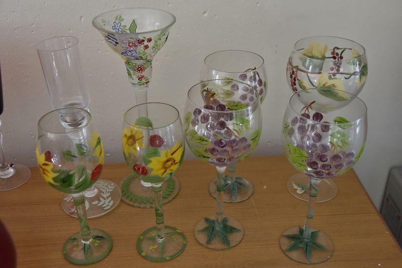 Collection of Handpainted Wine Glasses