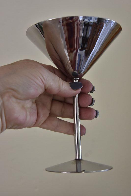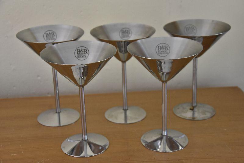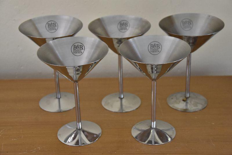 B & B Cognac Liqueur Stainless Steel Cocktail/Martini Glasses