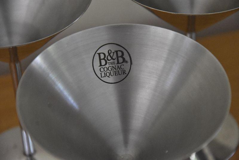 P Lot 143: B & B Cognac Liqueur Stainless Steel Cocktail/Martini Glasses