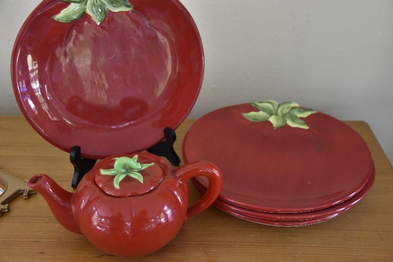 Tomato Plates and Teapot