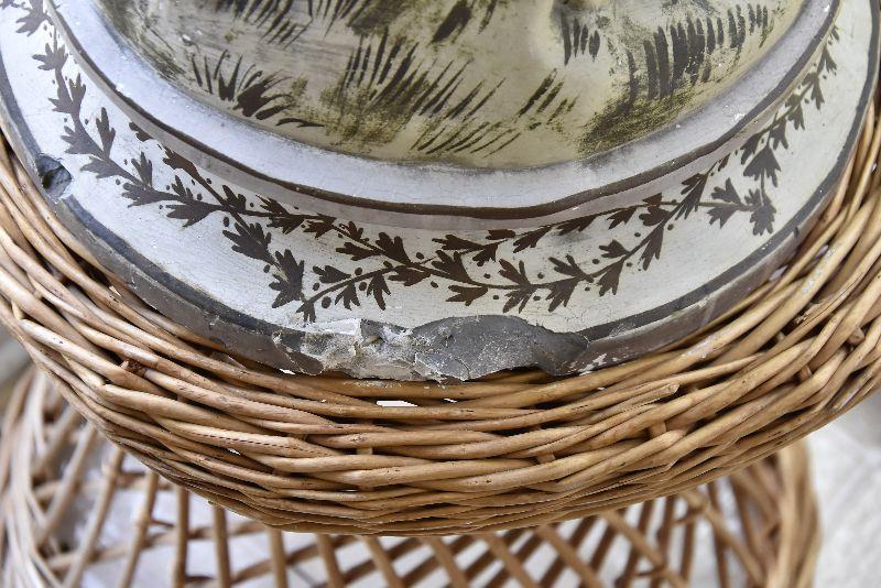 On wicker pedestal