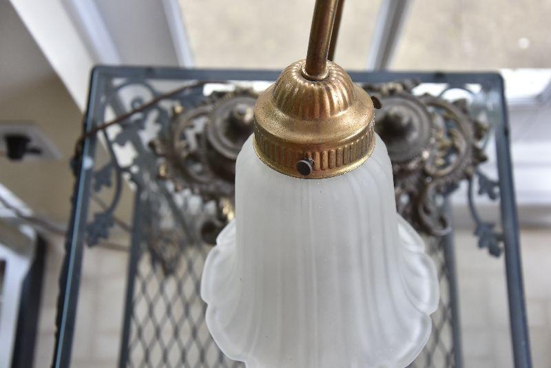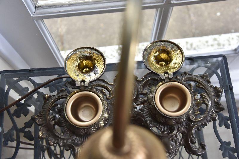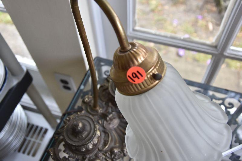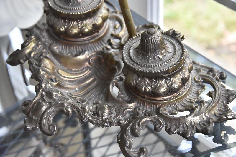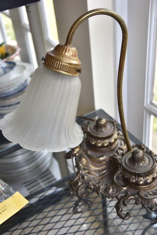 P Lot 191: Brass Desk Lamp with Ink Wells