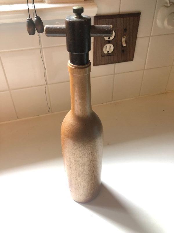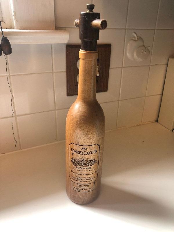 P Lot 82: Wood Pepper Grinder Wine Bottle