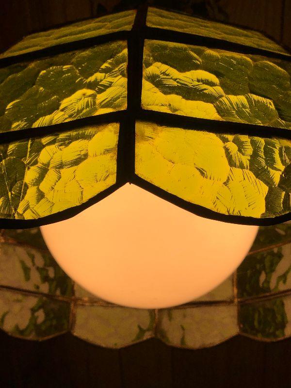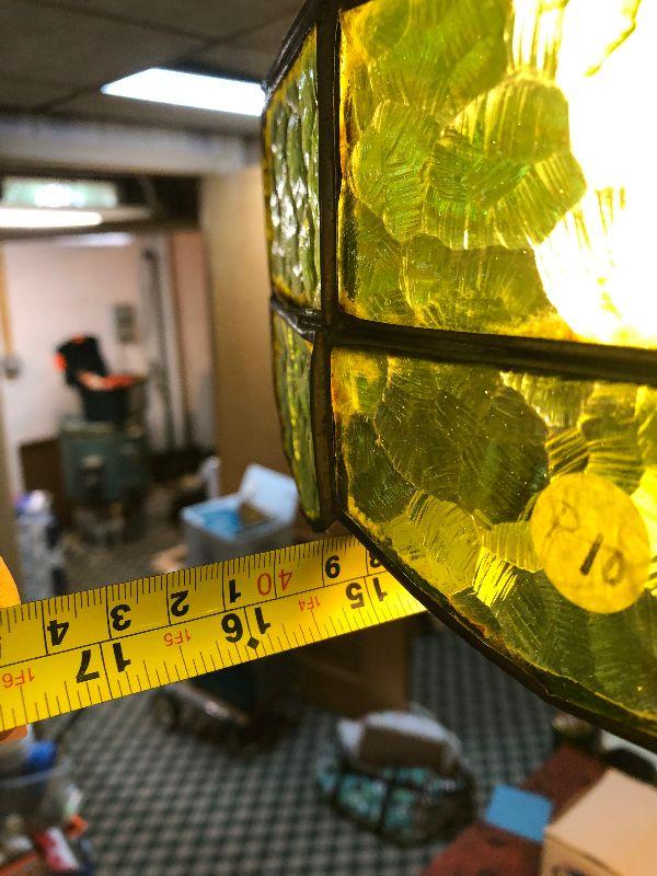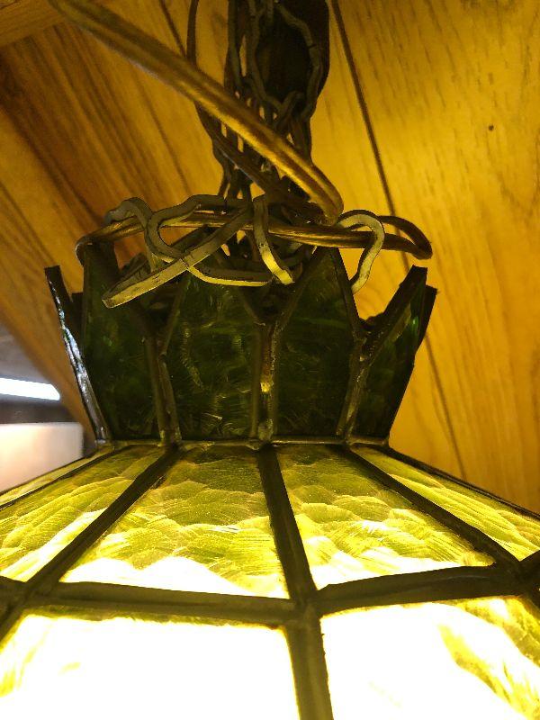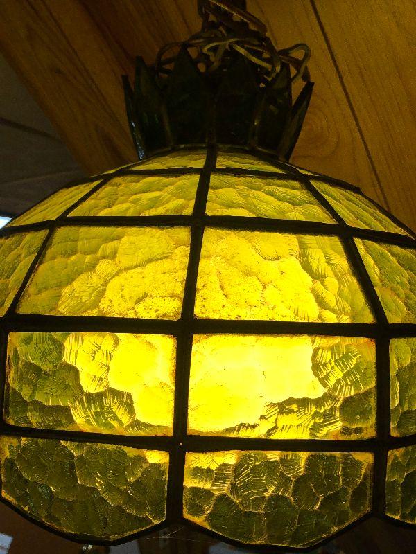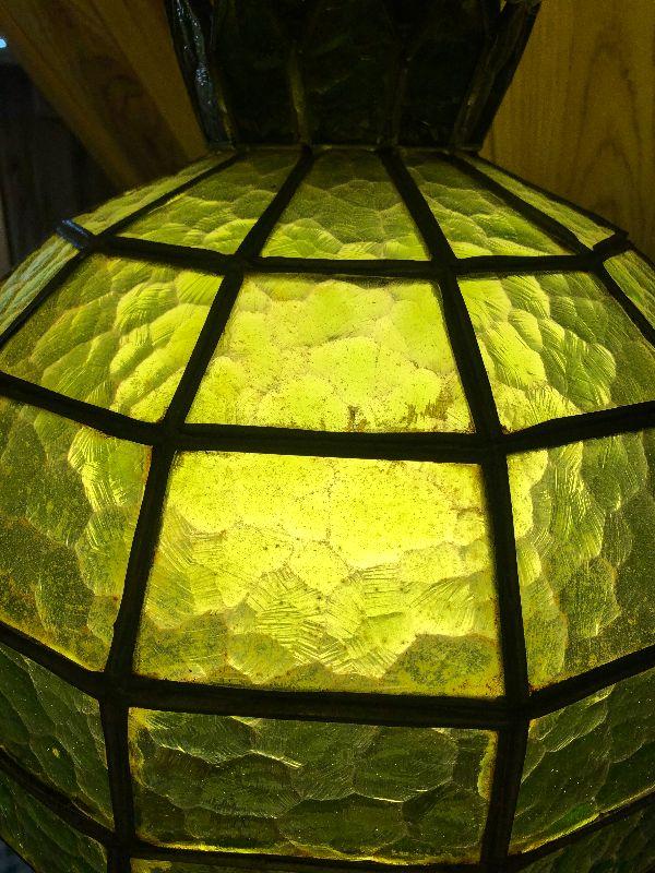 This is tested, andlooks amazing. Large white milk glass globe on interior. Exterior green shade is intact, minus one crack in one piece. Please see all pics for sizing and condition. Fun Find! Thank you for looking and have fun bidding.