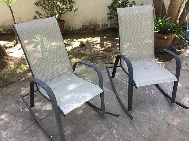Pair of outdoor patio rocking chairs